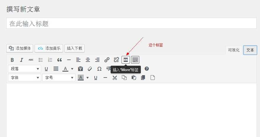 相信接触过wordpress的朋友对”more”标签都有所了解,当鼠标滑动到编辑框上如下图所示的工具条时,会有一个“插入more标签”的提示。但你会使用它吗?估计甚至有不少的朋友基本没有碰过这个标签。